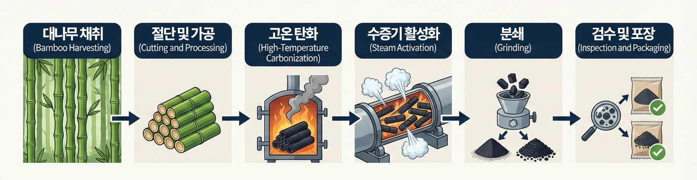 900~1,000°C 환경에서 비표면적과 기공 분포가 결정되는 수증기 활성화 공정이 진행됩니다.